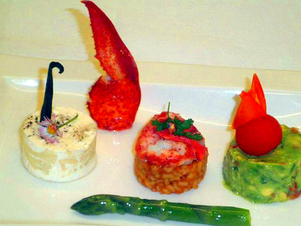 Panna cotta vom Karfiol mit Bourbonvanille Avokado und lauwarmen Hummerrisotto